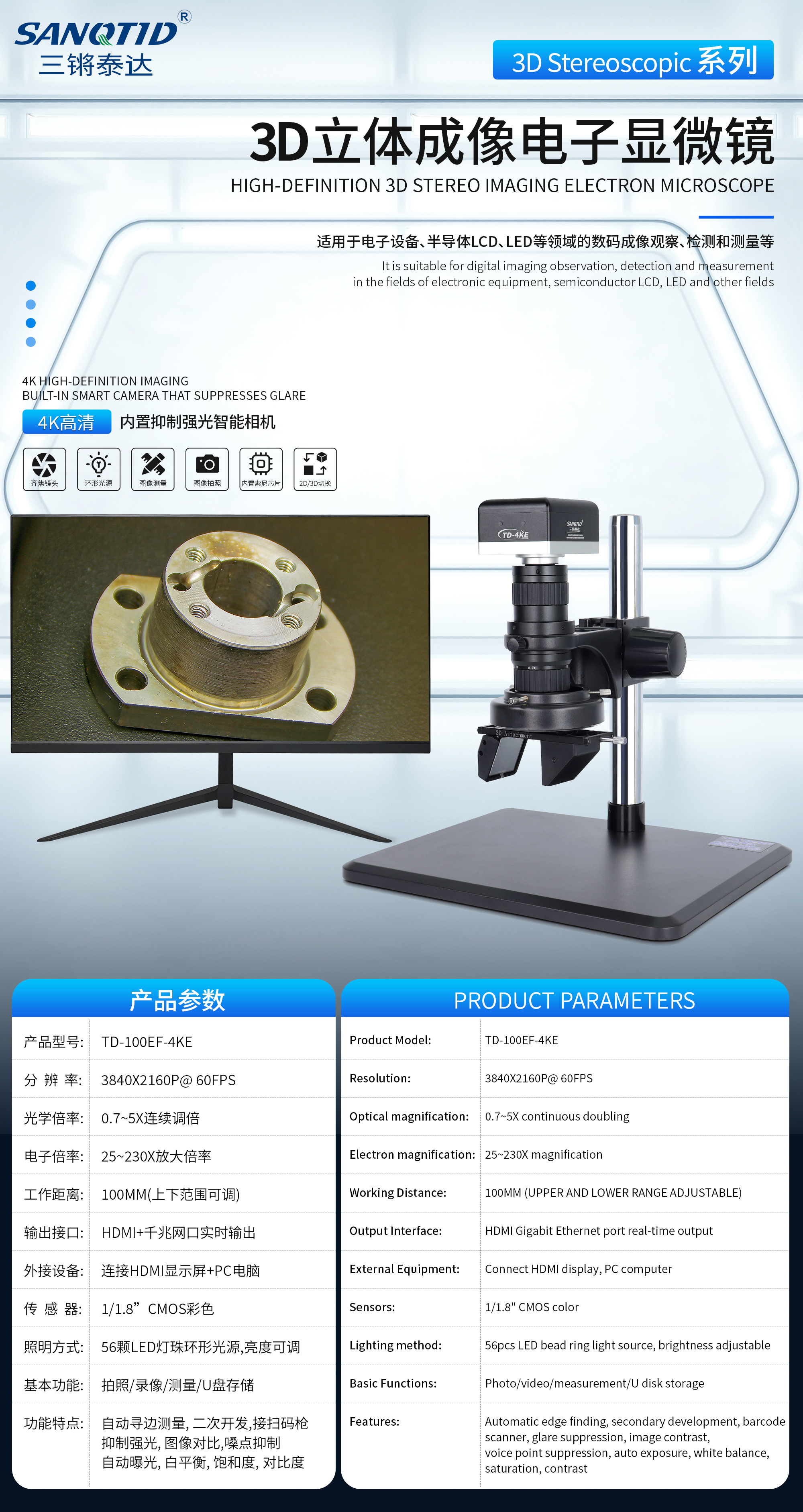 三鏘泰達(dá)-4K高清抑強(qiáng)光3D立體顯微鏡TD-100EF-4KE