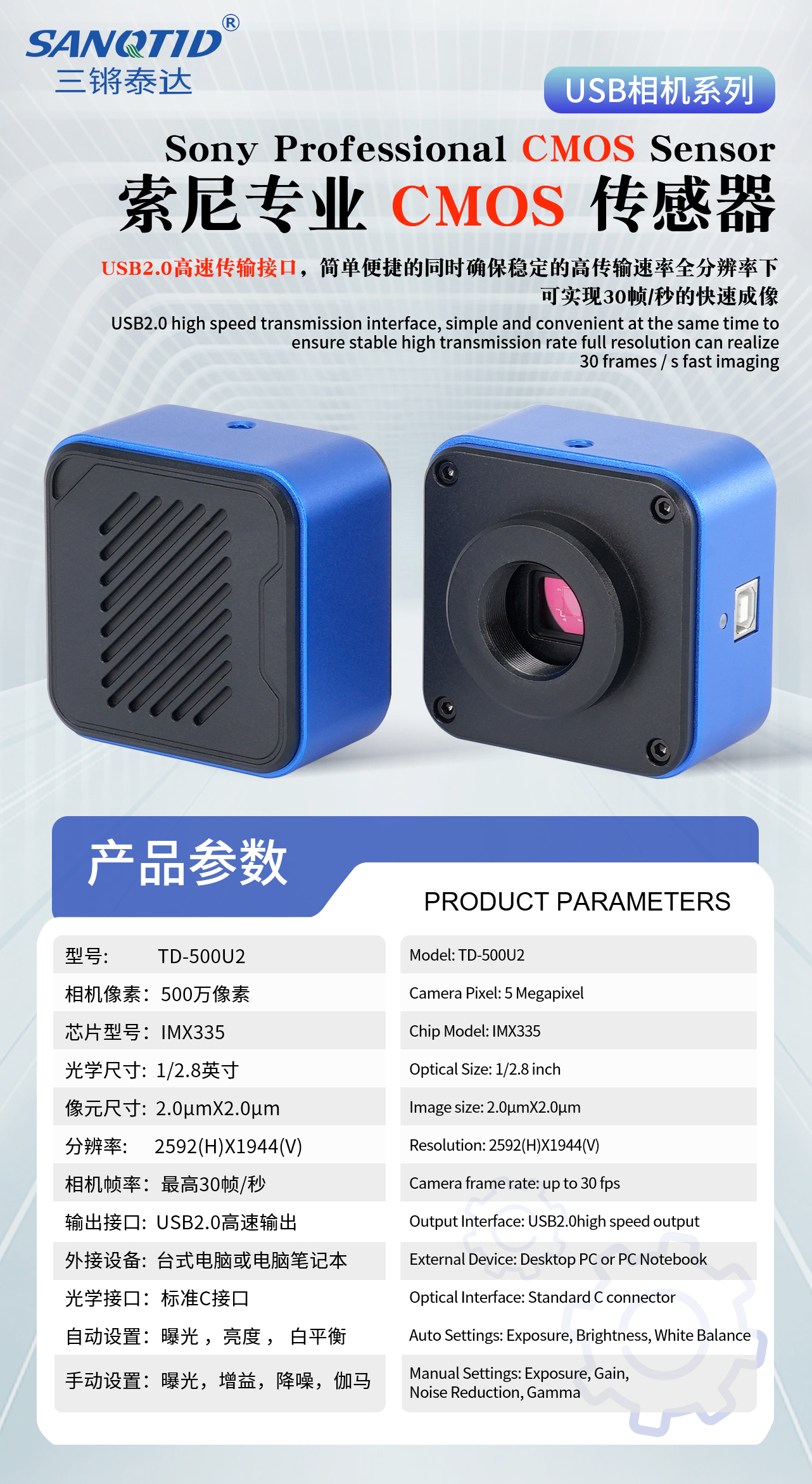 三鏘泰達(dá)-500W像素USB2.0傳輸工業(yè)相機(jī) TD-500U2