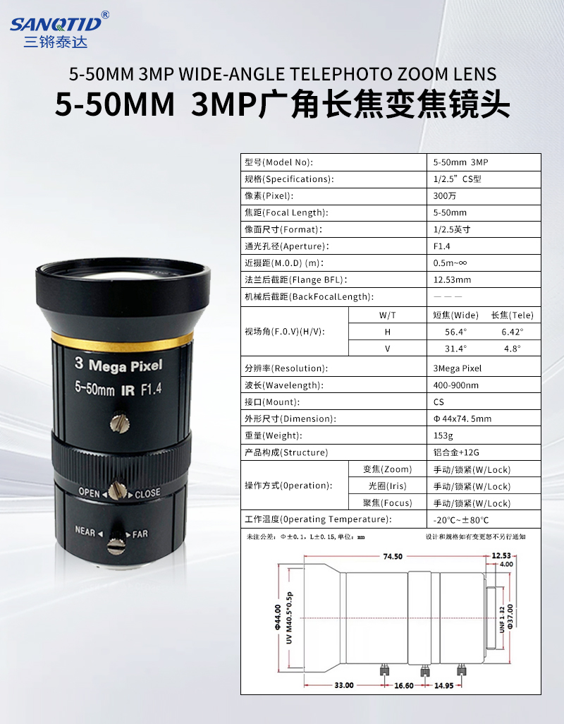 三鏘泰達 5-50MM 3MP廣角長焦變焦鏡頭