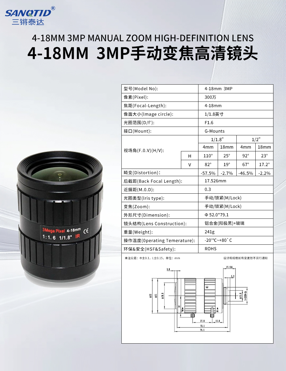 三鏘泰達 4-18MM 3MP手動變焦高清廣角鏡頭
