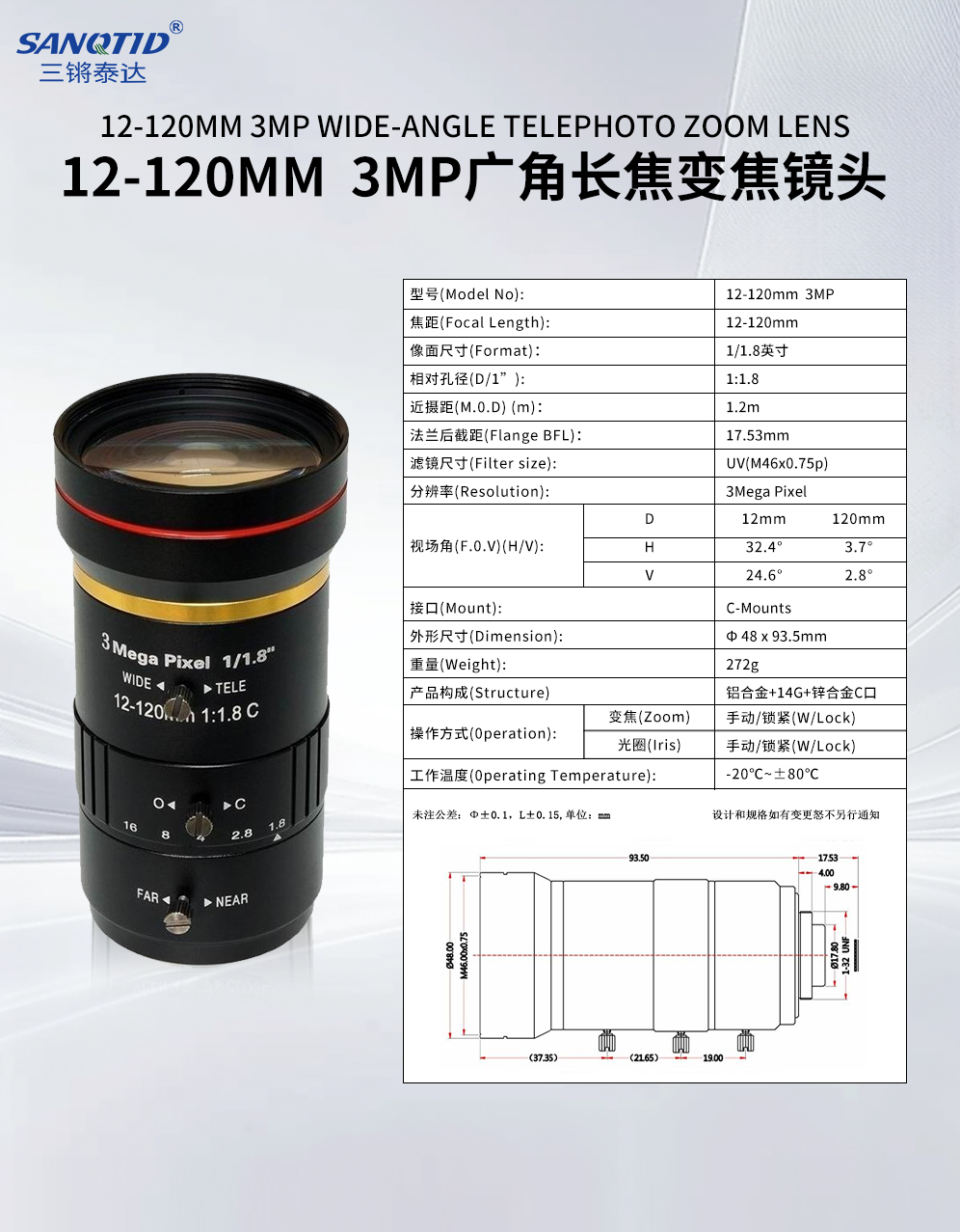三鏘泰達(dá) 12-120MM 3MP手動(dòng)變焦高清廣角鏡頭