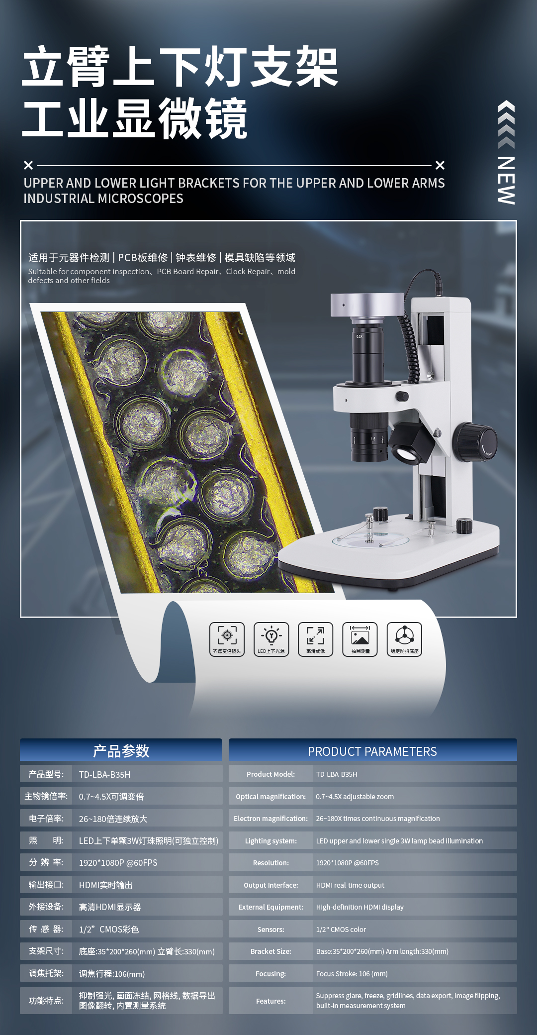 三鏘泰達(dá) 立臂上下燈2K抑強(qiáng)光工業(yè)顯微鏡TD-LBA-B35H