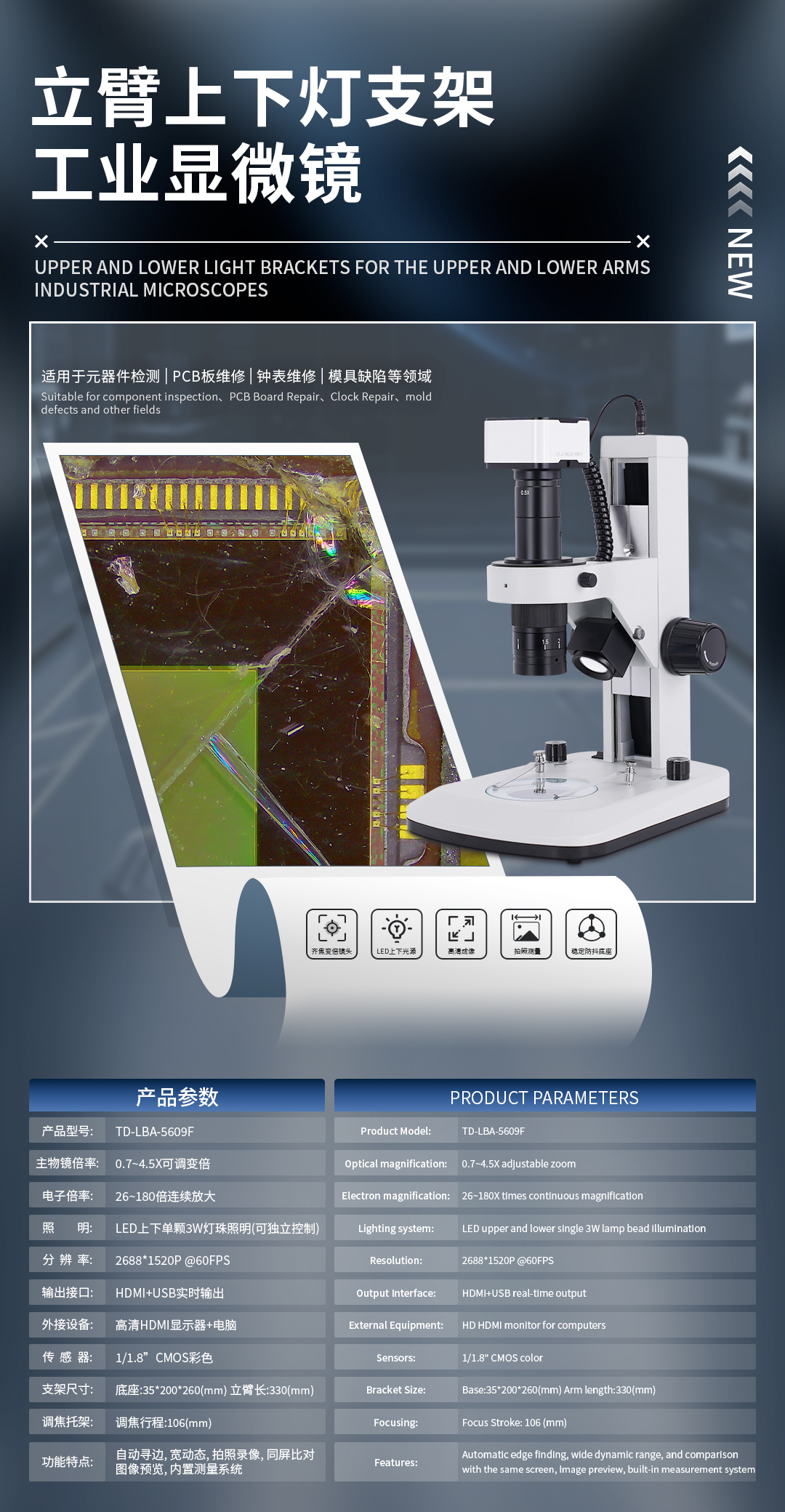 三鏘泰達(dá) 立臂上下燈2K自動(dòng)尋邊工業(yè)顯微鏡TD-LBA-5609F,上下光源可獨(dú)立調(diào)節(jié),支架支持選配