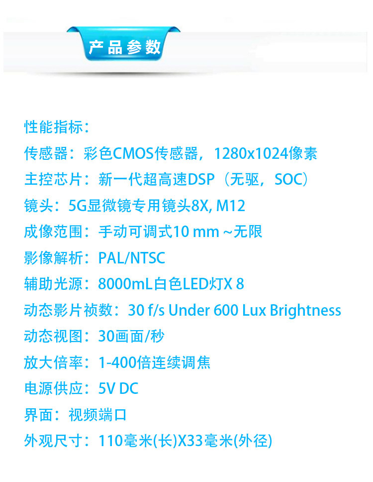 這款產(chǎn)品是屬于單筒的一款便攜式顯微鏡,高清2800萬像素,標(biāo)配1-400倍的放大倍數(shù),倍數(shù)可增,高清晰度,含有輔助光源,彩色COMS傳感器,1280X1024像素,電源5V DC,5G顯微鏡用鏡頭8X,M12,30FPS,安裝操作簡單,適用于多種行業(yè)應(yīng)用,提高工作效率。